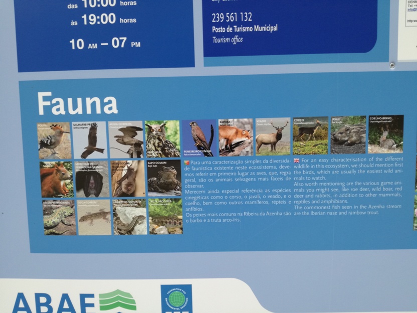 Para uma caracterização simples da diversidade faunística existente neste ecossistema, devemos referir em primeiro lugar as aves, que, regra geral, são os animais selvagens mais fáceis de observar. Merecem ainda especial referência as espécies cinegéticas como o corso, o javali, o veado, e o de coelho, bem como outros mamíferos, répteis anfíbios. Os peixes mais comuns na Ribeira da Azenha são ar o barbo e a truta arco-íris.