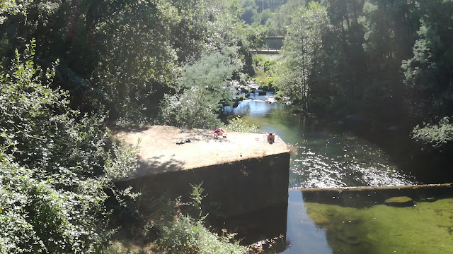 Duas zonas fluviais de fácil acesso com água límpida do Rio Homem, mesmo ao lado das pontes, pois tem uma para carros e outra pedonal/ciclovia. Tem parque de estacionamento mesmo ao lado.